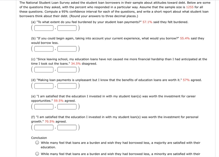 Solved The National Student Loan Survey Asked The Student Chegg Com