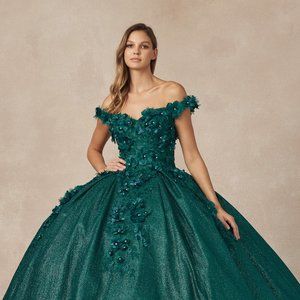 Emerald Green Quinceanera Dresses Sequin Ball Gown Off The Shoulder We Mychicdress